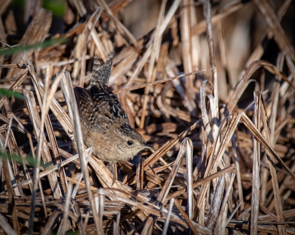 We were a little surprised to find this Sedge Wren hanging about. Most of its group took a jet (stream) north last week.