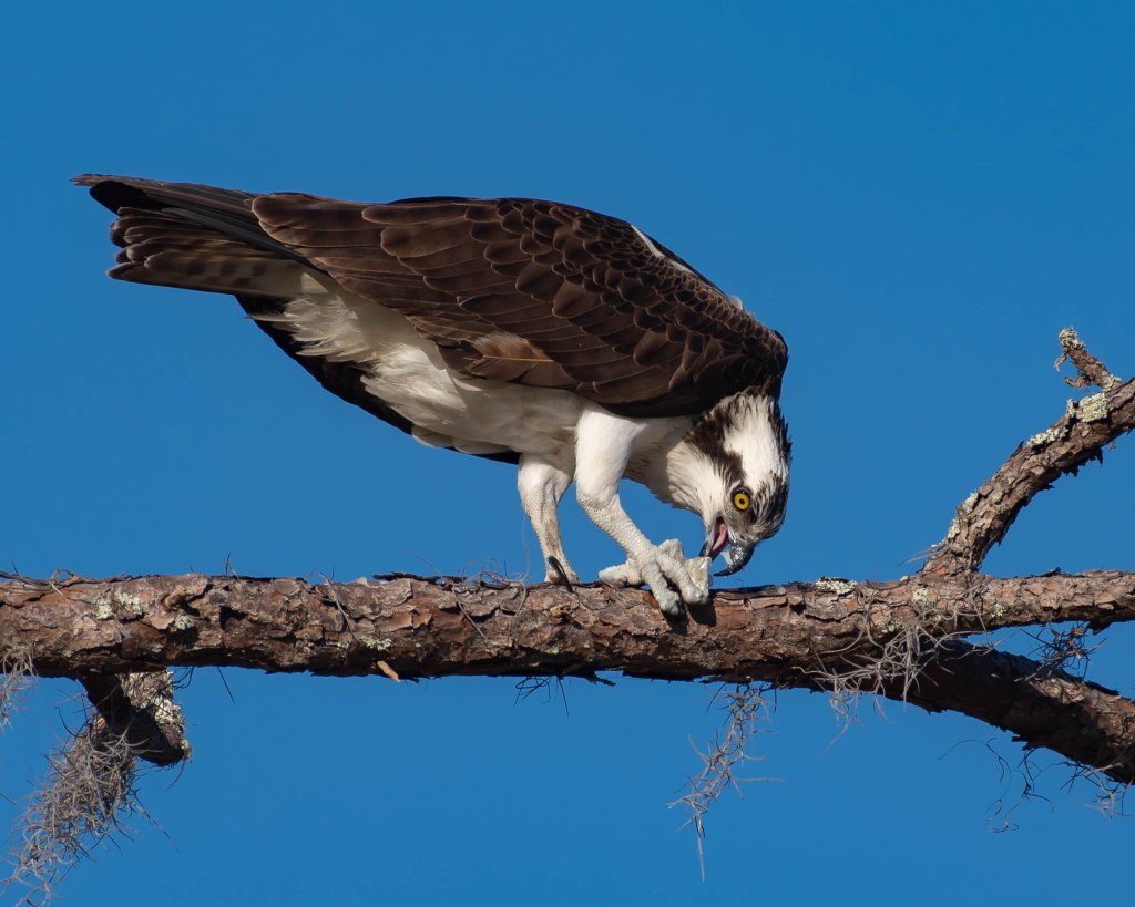 Migratory birds are still here but their numbers are decreasing. Some are forming into larger groups and feeding voraciously as they prepare for a long flight north. Right on schedule, just after Valentine’s Day in mid-February, Swallow-tailed Kites filtered into the area after spending the winter on the pampas of Argentina. Ospreys are fully engaged in home construction.