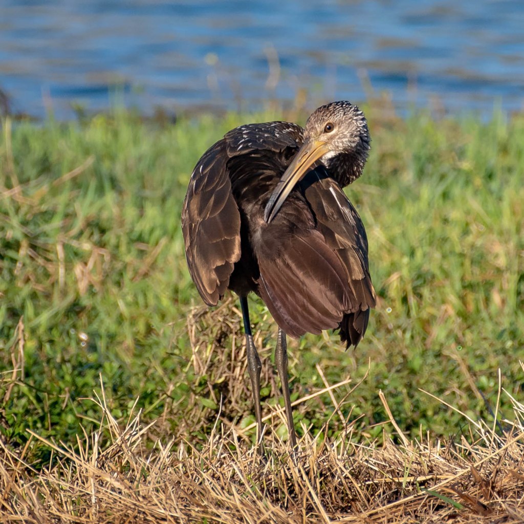 A resident throughout our area wherever there is water and shoreline vegetation, the Limpkin, is a unique bird and the only member in its taxonomic family (Aramidae). Related to rails and cranes, Limpkins are pretty much dietary specialists dining on aquatic snails. In the second image, notice the gap near the end of the bill. The design helps the bill operate like tweezers to pull snails from their shells.