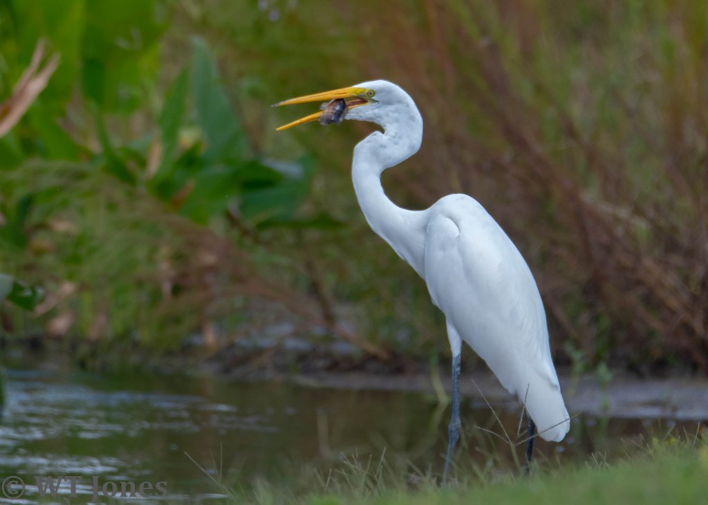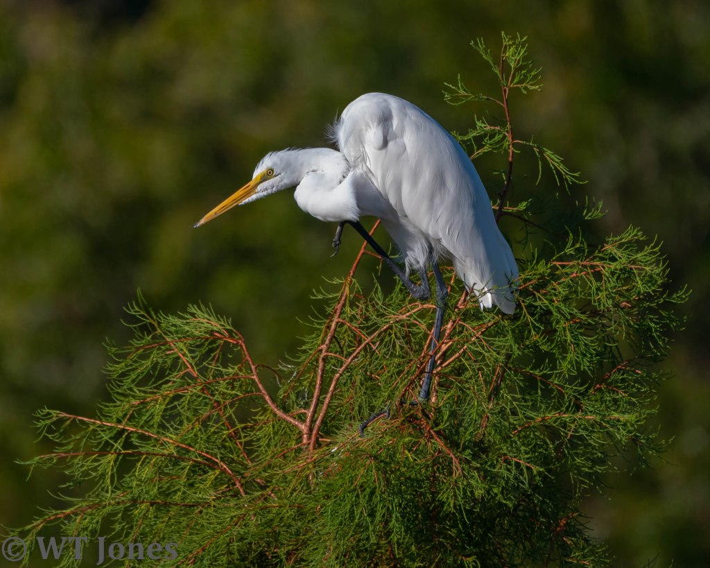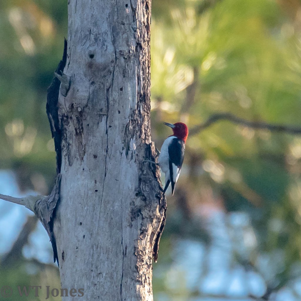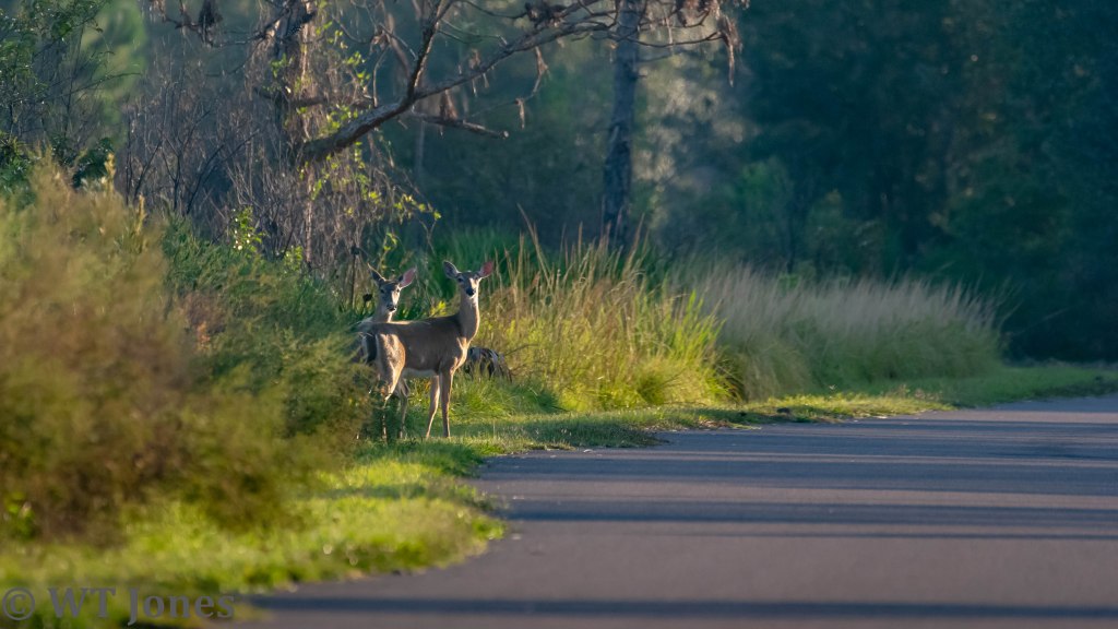 We had an early morning surprise when a Coyote sauntered across the road. Poor guy looked like he had a rough night. Coyotes are not uncommon in the area although we usually just see their tracks. Around sunrise, the earliest callers of the bird world are Northern Cardinals and Mourning Dove. As the night gives way to the new day, flocks of White Ibises and Cattle Egret move from roosts to feeding areas. Hammering of woodpeckers can be heard throughout the forest. Common Gallinules gabble from all the lakes. A Red-shouldered Hawk’s scream ensures any creature still asleep is now fully awake.