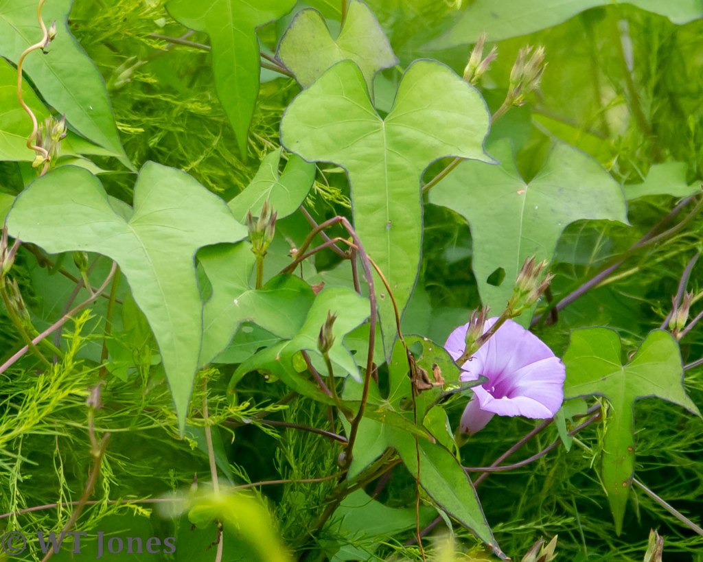 Wild Bushbean (Macroptilium lathyroides) is a non-native species which has been prevalent in Florida for at least 50 years. It can become a nuisance if it grows in large clumps due to its tendency to crowd out native species. We like the bloom’s unique brown/purple color.