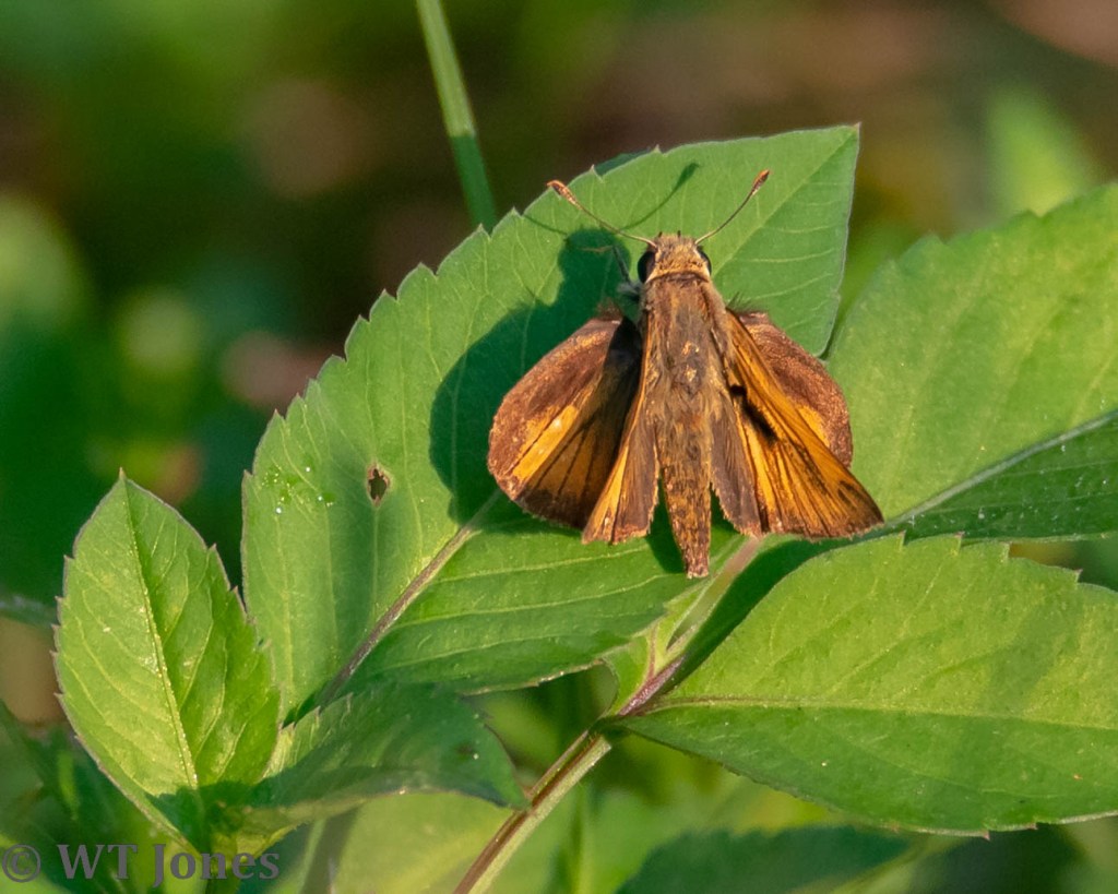 Grass Skippers give me fits. Spotting one usually begins a game of hide-and-seek as they dive down into the grass and disappear. Then, the little orange/brown things fly off in one direction, reverse course, veer one way then another – not a game for an old person to enjoy for long! My best guess on this one is a Whirlabout (Polites vibex). Other suggestions are very welcome.