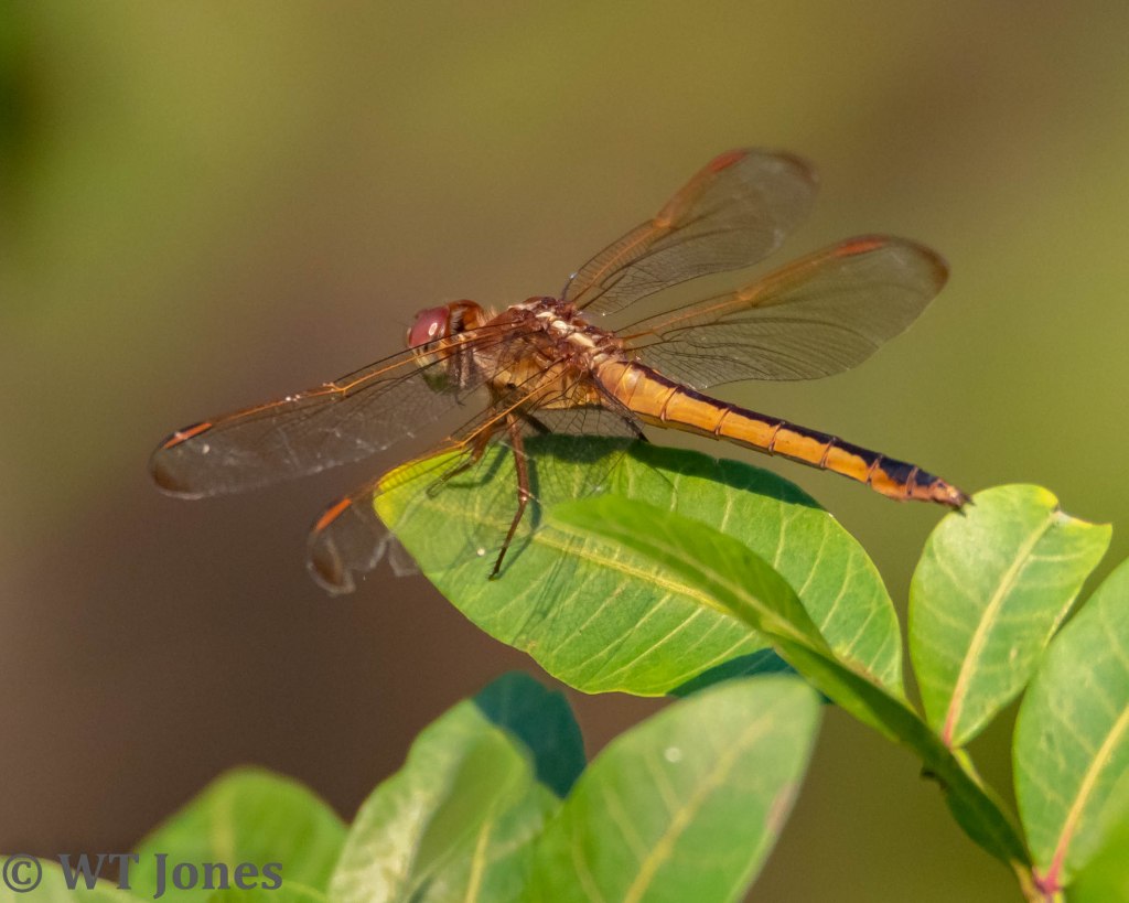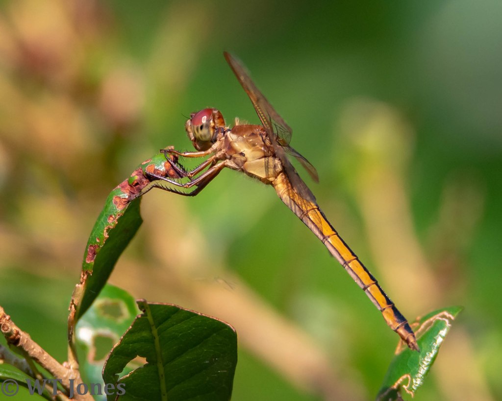 The very small Eastern Amberwing (Perithemis tenera) mimics a wasp’s flight characteristics in the hope of thwarting predators.
