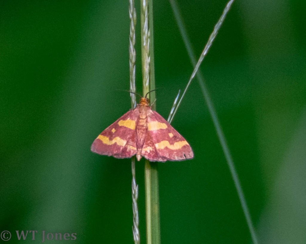 Tiny. Hard to see through the camera’s viewfinder. Worth the effort. Attractive, yes. But how can I not like a moth called a Coffee-loving Pyrausta (Pyrausta tyralis)?