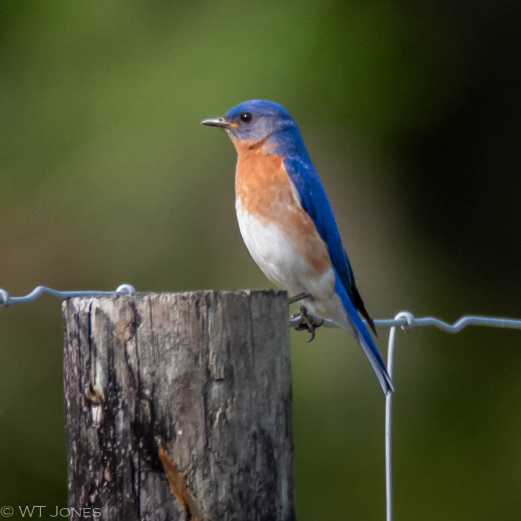 “There is no blue like that of the Bluebird.” Gini The Profound. She is right, of course. At various angles and different light, the Eastern Bluebird’s plumage can be bright, subtle, both at the same time, but always amazing to see! We watched as the blue bundle dropped from the fence post to the grass and returned with a grasshopper which immediately disappeared. I once again was guilty of overindulgence as I clicked the shutter release of the camera one too many times. Our Bluebird of Happiness flew toward the tree line and remained out of sight.