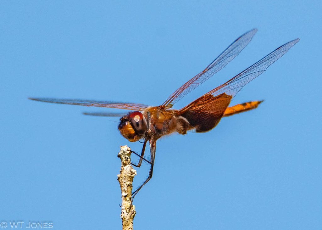 The Carolina Saddlebags (Tramea carolina) can vary from dull brown to bright reddish-orange. It is one of our more common dragonflies.