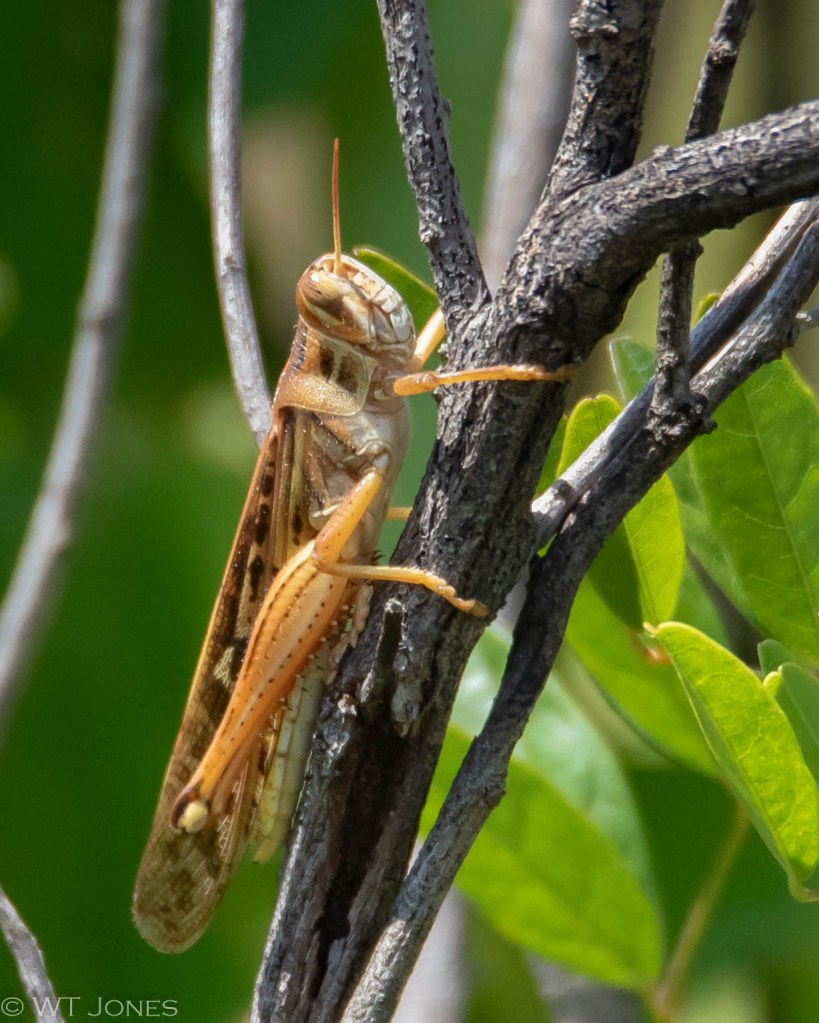 American Grasshoppers (Schistocerca americana) are one of our most common grasshoppers. Their ability to fly short distances has provided them with the alternate name of American Bird Grasshopper.