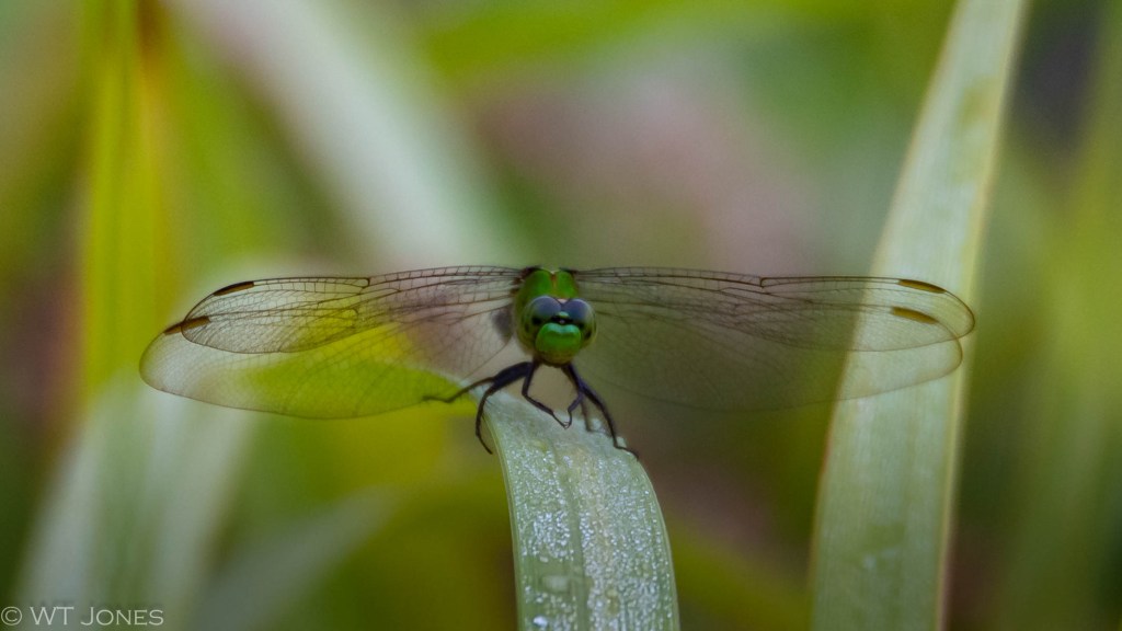 An emerald green female Eastern Pondhawk (Erythemis simplicicollis) contemplates whether to fly or attack. She remained for a moment.