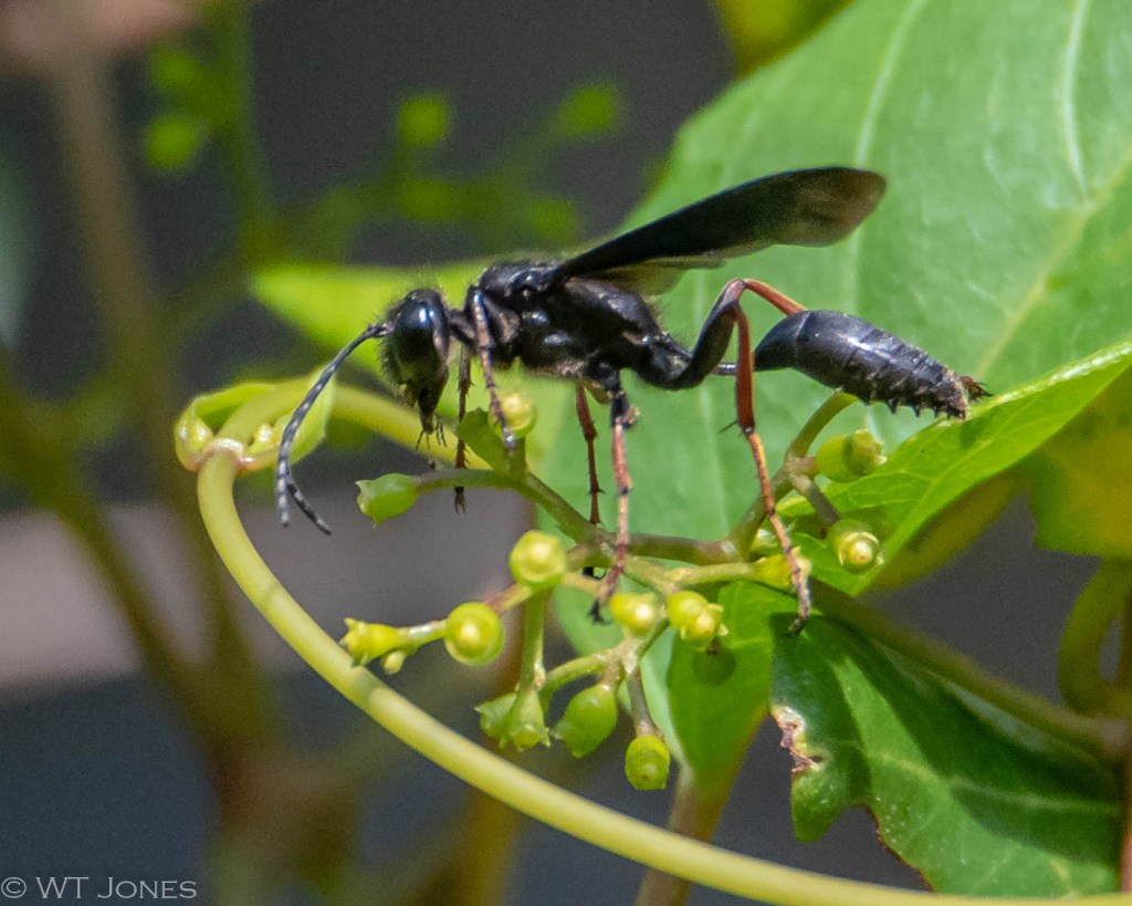 A new insect for us! A Brown-legged Grass-carrier (Isodontia auripes) wasp uses long blades of grass to create compartments within its nest.