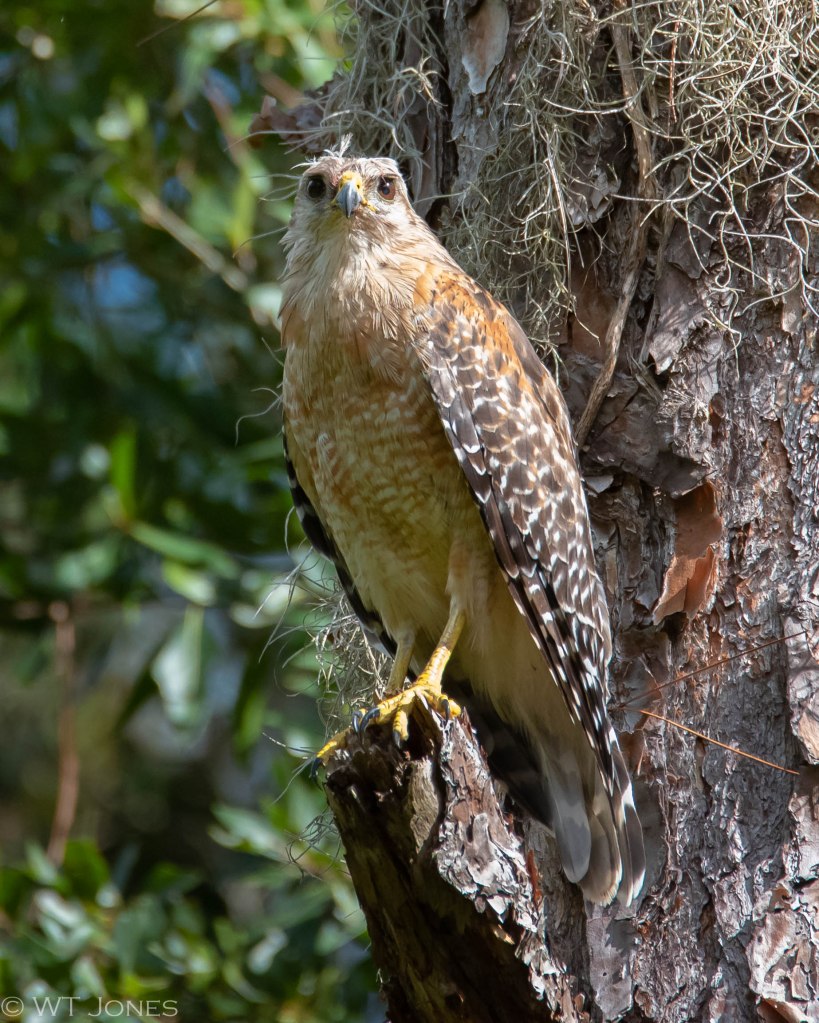 The early morning mist was light and the woods were just waking. Rude Blue Jays did their best to ensure no one slept in. Nature did not provide them with a “snooze alarm”. Over the path, drops of water rained down from an overhanging oak tree limb as a squirrel scampered to another branch as though late for her breakfast meeting. In a clearing of scattered pine trees and thick palmettos, a distant Northern Bobwhite sounded his name – “Bob WHITE”! A Red-shouldered Hawk joined the Blue Jays in letting the natural world know that a couple of two-legged interlopers were tromping around in their world and were likely up to no good.