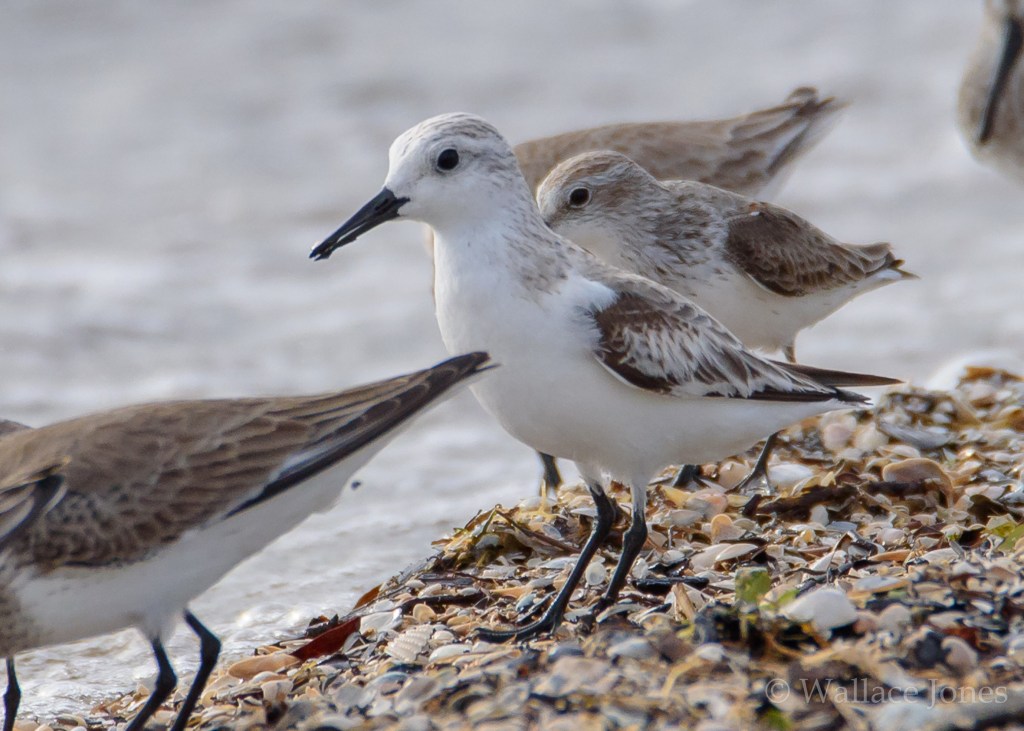 In non-breeding plumage, the Sanderling is pretty easy to spot as it is white below and light gray above. It is a little smaller than a Dunlin and has a shorter bill.