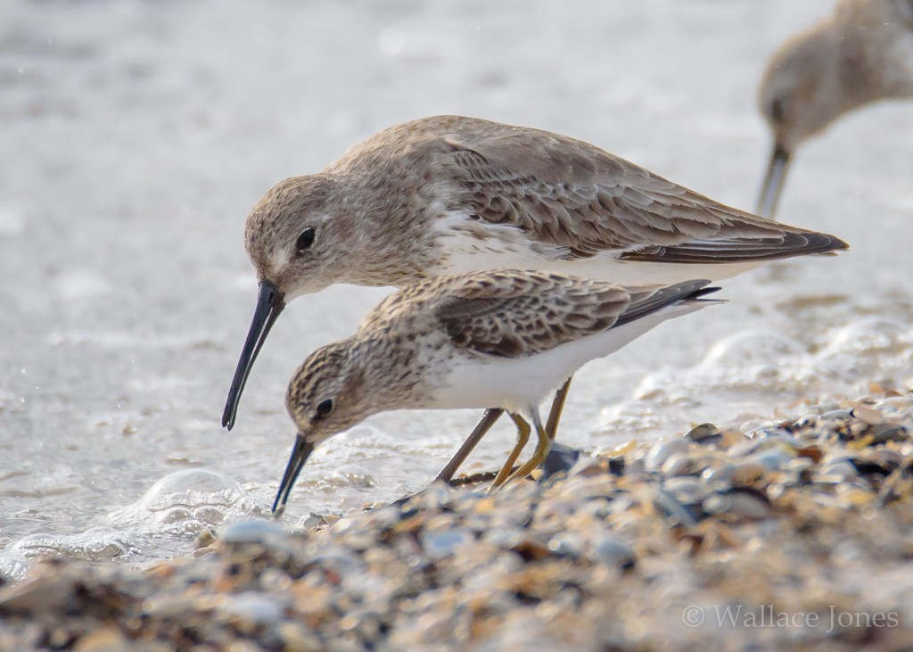 Here you can compare a Dunlin and Least Sandpiper. They look like twins! Except for that size thing.