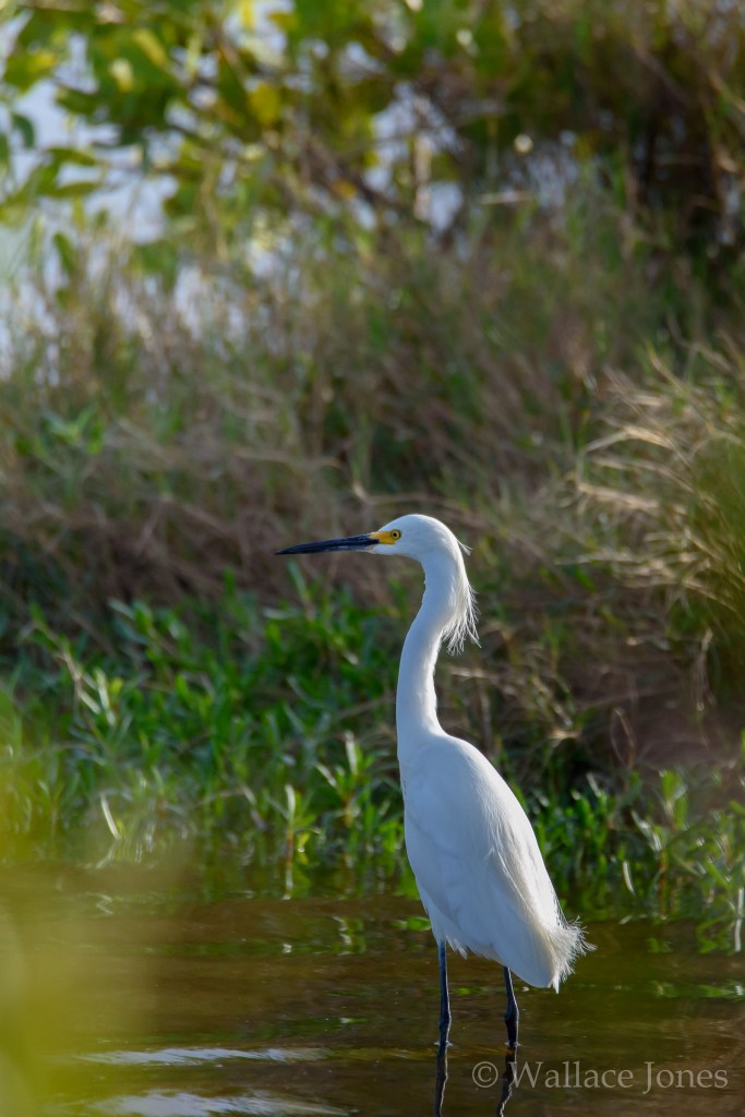 Along the Black Point Wildlife Drive, a Snowy Egret hunts for supper before it becomes dark.