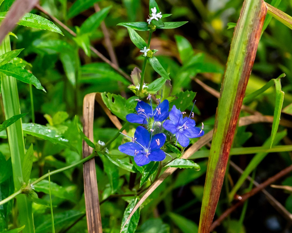 The color almost doesn’t look real. Talk about “blue“! Found in only four southeastern states, the Skyflower (Hydrolea corymbosa) is aptly named. Enjoy the blooms early as they begin to fade in the afternoon.