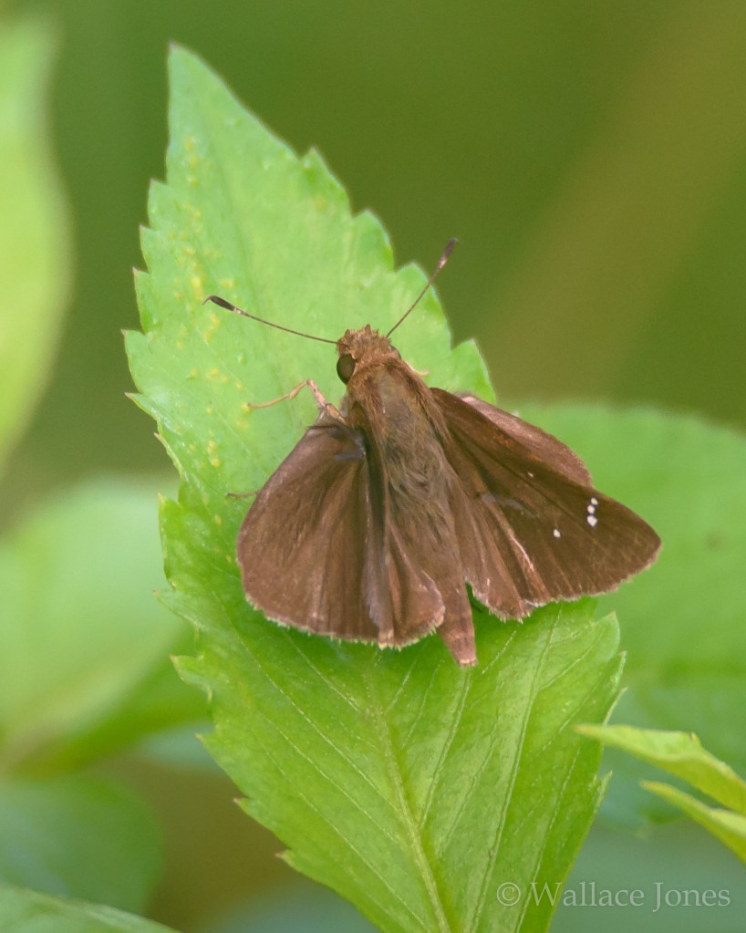 Small, brownish-gray and a few tiny white spots help identify a Clouded Skipper (Lerema Accius). Even simplicity in nature is beautiful.