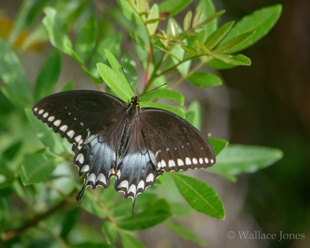 No subtlety here! A colorful Spicebush Swallowtail (Papilio troilus) shows off its black and contrasting wash of blue, which identifies it as a female. The male displays a wash which is more greenish.
