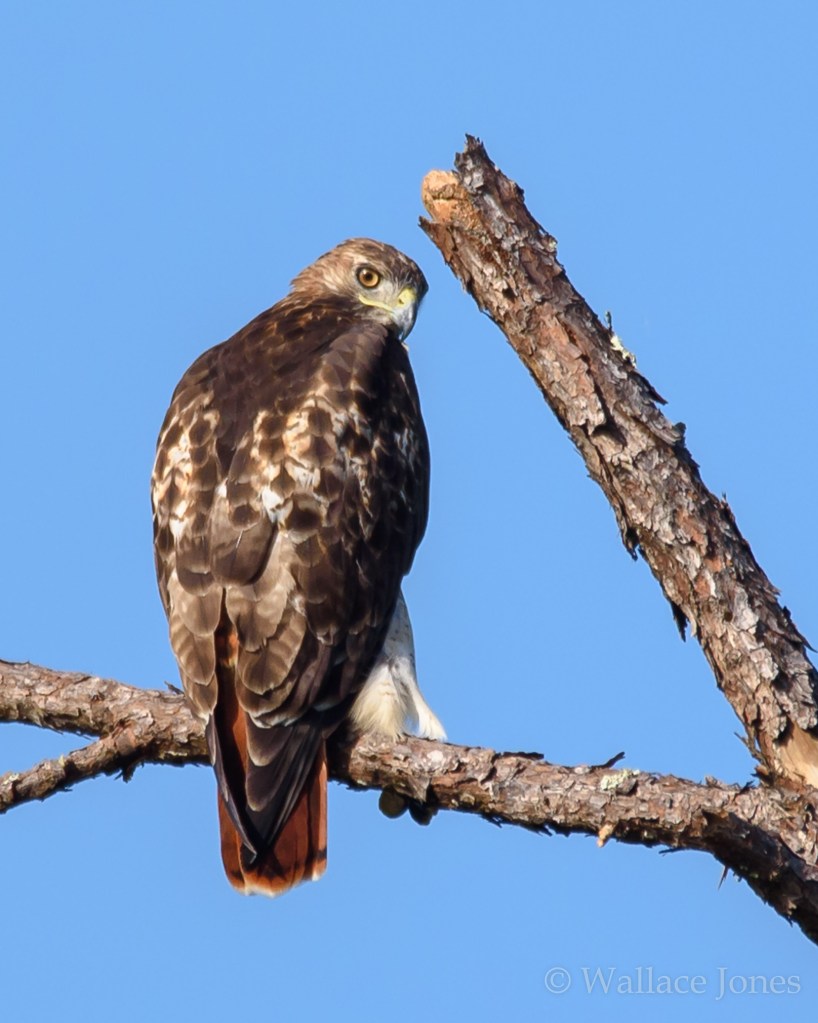 Heading home, we spotted a movement in a tall pine tree and parked to take a closer look. A magnificent Red-tailed Hawk! She appeared to have fresh prey which may have been a rabbit. Her head snapped around and I took a couple of quick shots and left her alone to enjoy lunch.