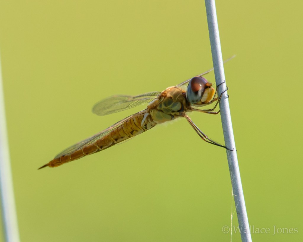 A female Roseate Skimmer (Orthemis ferruginea) may not have the flashy hot pink coloration of the male, but her striped thorax and golden abdomen are distinctly beautiful.