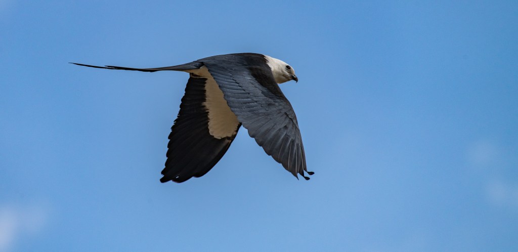 As we headed for the park exit, a Swallow-tailed Kite escorted us toward the gate. Okay, so it was actually just following the road where it often finds tasty treats resting or crossing or racing.