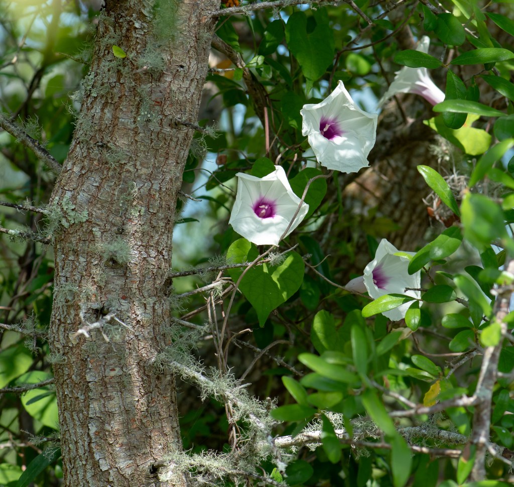 It was a typical Florida morning. Bright blue skies, sunshine doing its job of drying dew-laden plants, deer and rabbits foraging along the edges of the forest, insects beginning their daily routine of feeding/mating/surviving, birds singing. The chorus of cicadas rose and fell like a wave rolling onto a beach. Hammering woodpeckers reminded us of an army of carpenters busily building new houses. Red-shouldered Hawks called from the sky and our breeding season Swallow-tailed Kites soared gracefully just above the treetops. Softshell Turtles and alligators at the lake, wading birds in the wetlands, Pig Frogs grunting from the creek and – the flowers.