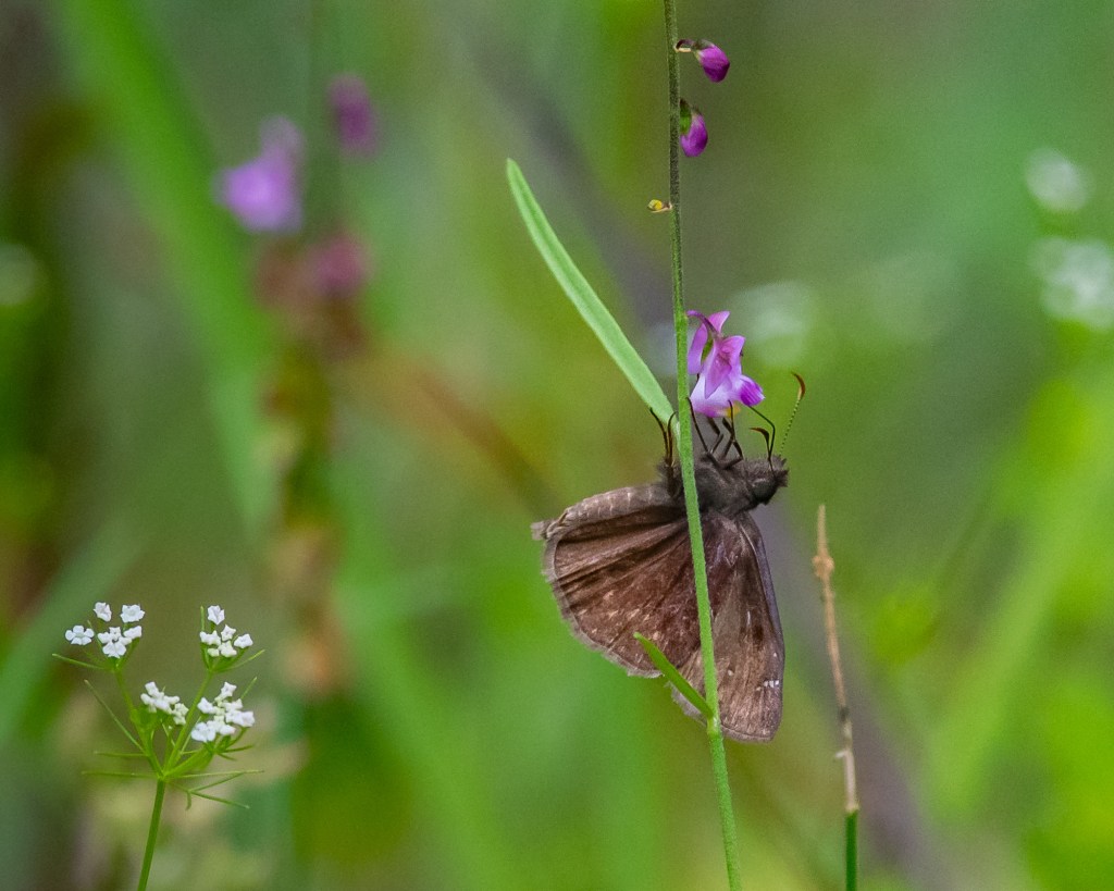 After an hour or so of examining weeds, leaves and dirt “up close and personal”, we took a breakfast break by the side of a lake. In front of us, Ospreys were fishing, Anhingas were drying their wings, Gallinules were preening, a Little Blue Heron was hunting. Gini said, “See? We haven’t missed a thing by slowing down.” The smarter half of the partnership was right – again.