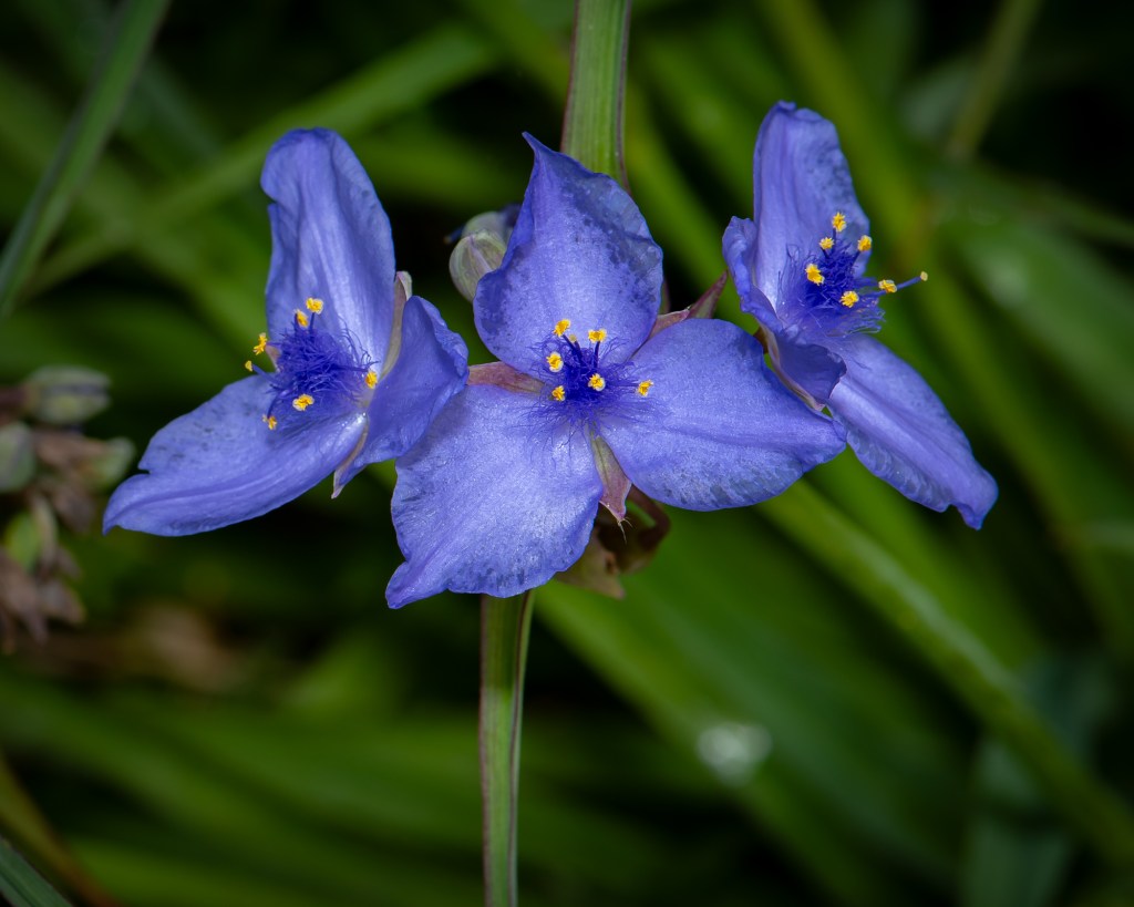One of those plants mentioned earlier that would be easy to run over at the edge of the road, the blooms of Narrowleaf Blue-eyed Grass (Sisyrinchium angustifolium) are incredibly intense.