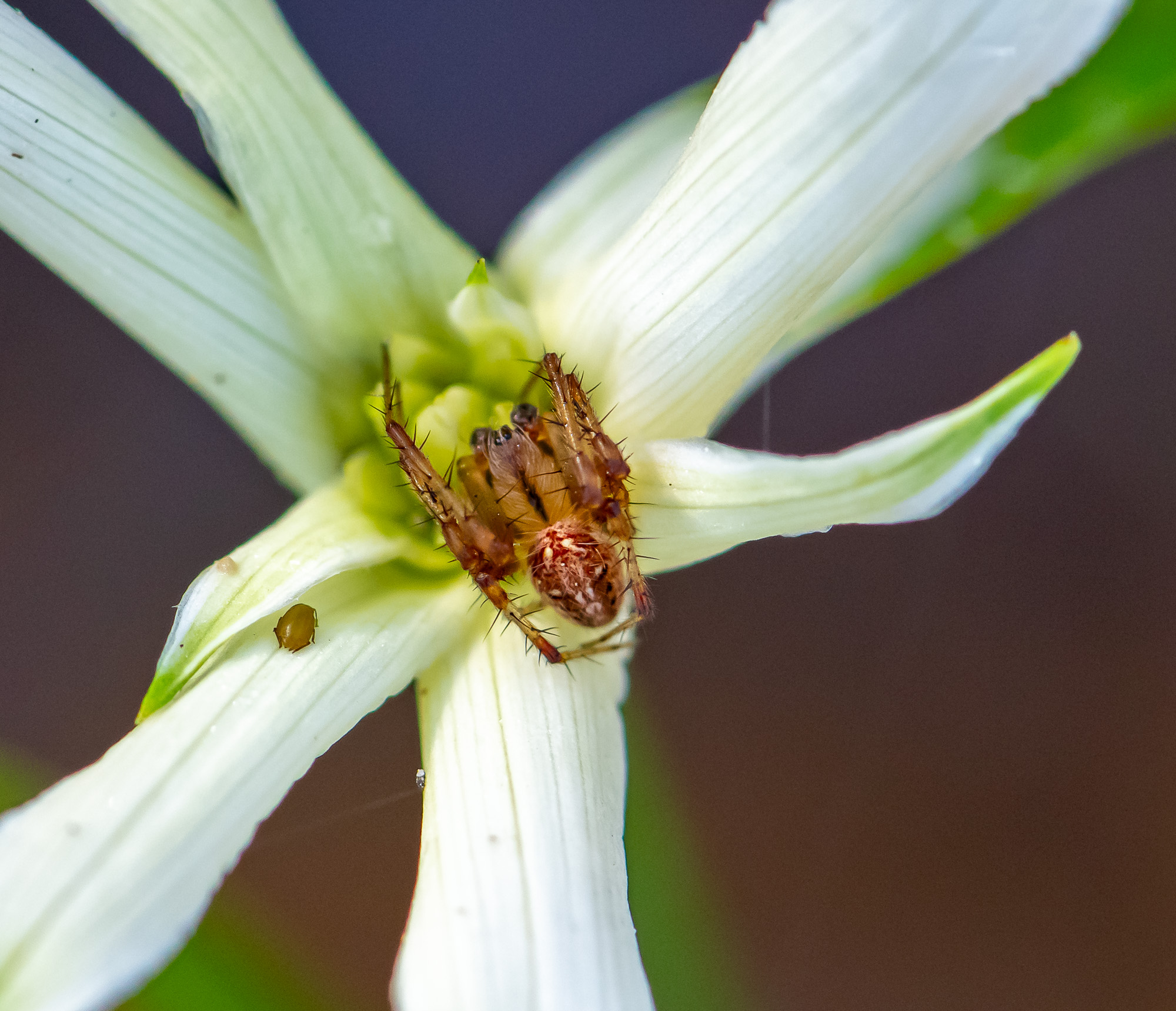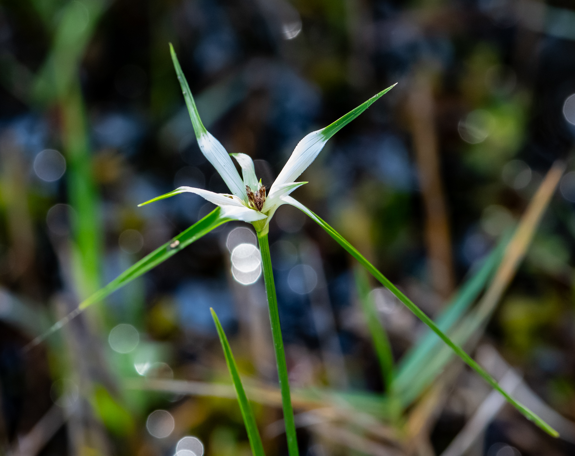 It gives the impression that it’s a flower, but the lovely Starrush Whitetop (Rhynchospora colorata) is actually a sedge. At least one critter doesn’t care if it isn’t a flower as a spider found a nice place to hide. I think it’s a Green Lynx Spider. No idea what the other tiny photo-bombing bug is.