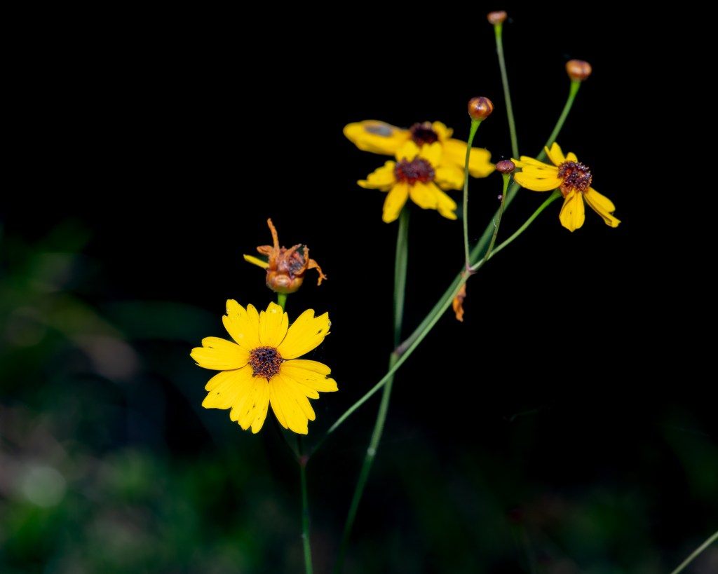 Wiry stems with smallish yellow flowers are beginning to become abundant. Each year, large patches of Leavenworth’s Tickseed (Coreopsis leavenworthii) brighten the countryside.