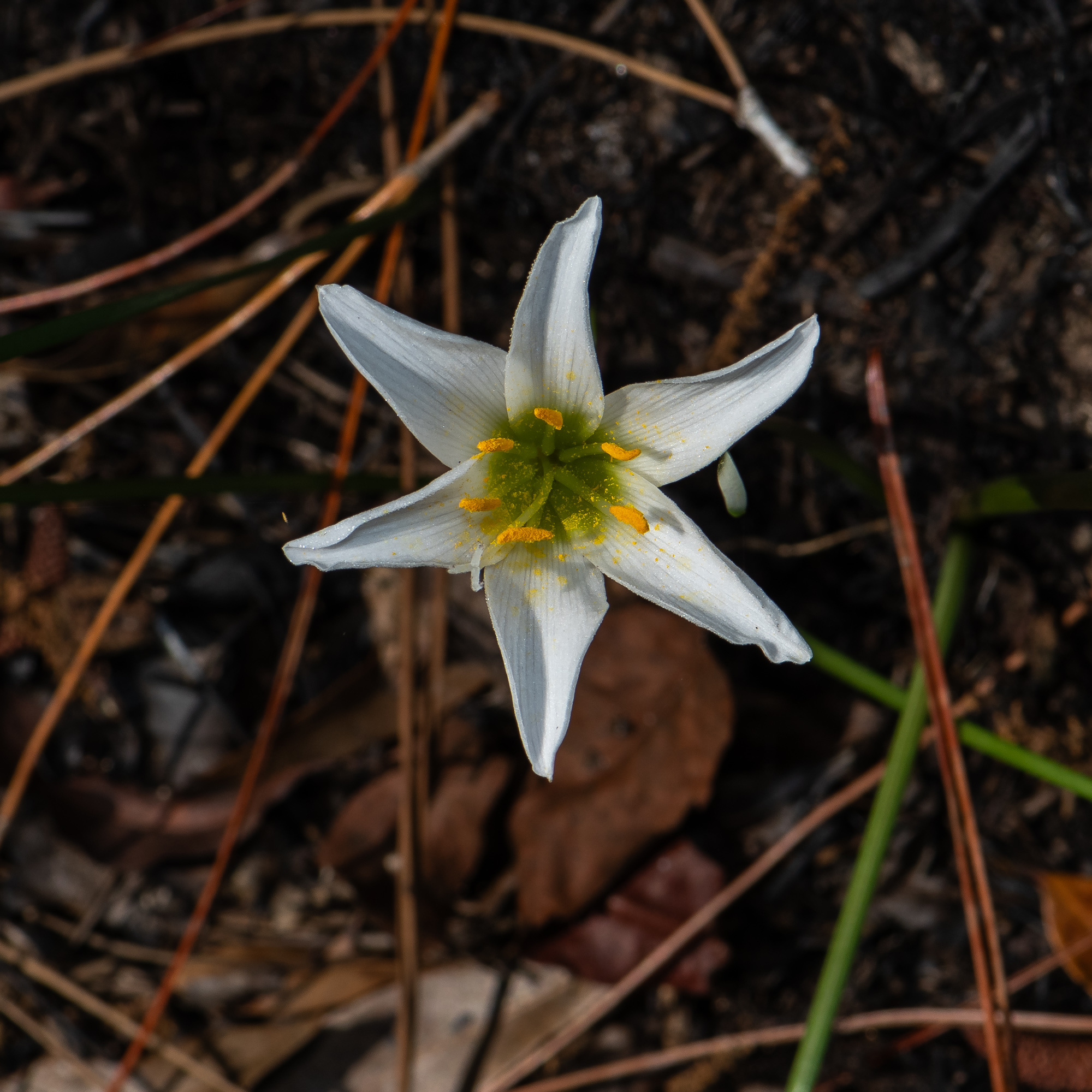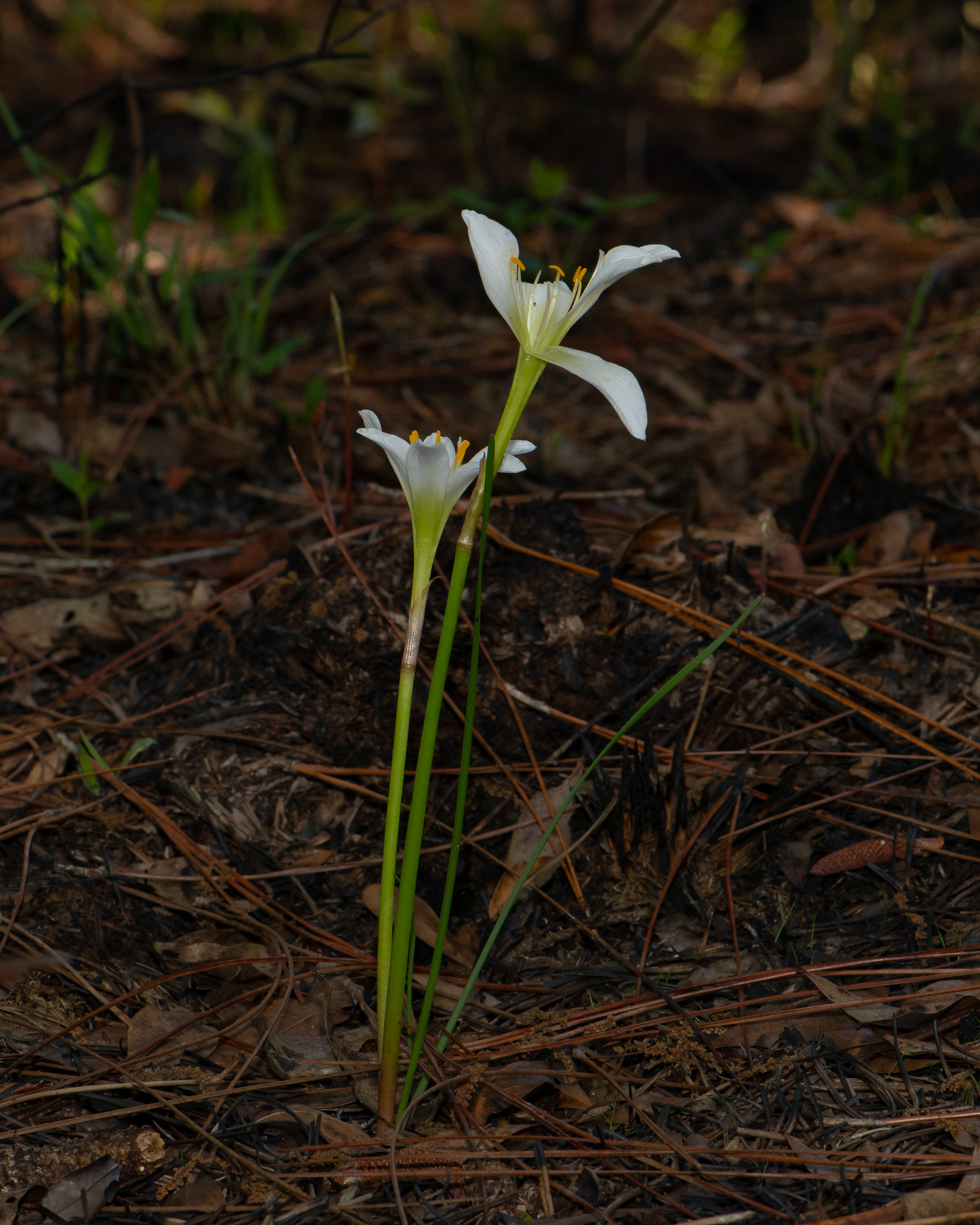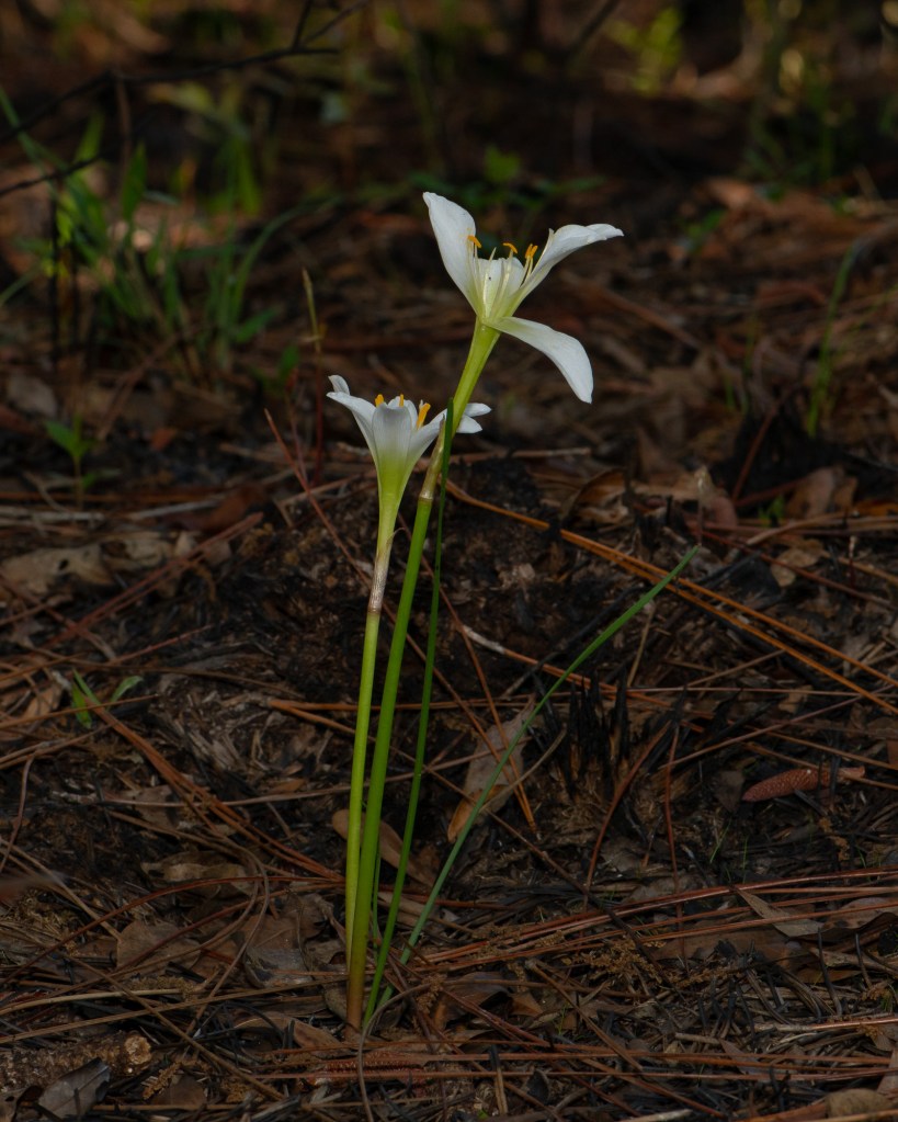 In the understory of pine forest which had recently been the subject of a prescribed burn, we found a few lovely rain lilies blooming. This area of central Florida has two species of this beautiful flower and I believe this one is called Zephyrlily (Zephyranthes treatiae S. Watson). Both species are considered threatened within the state.