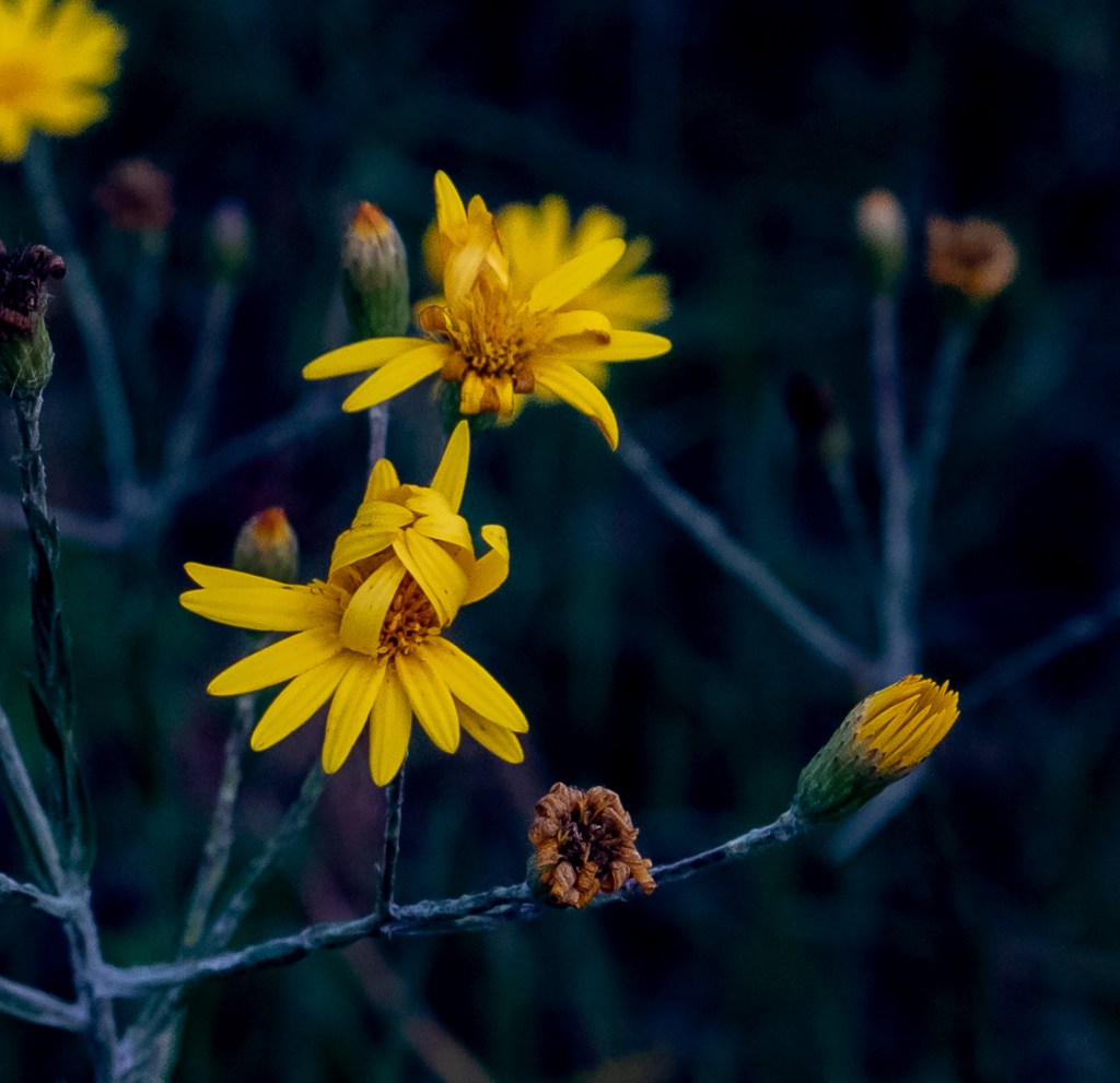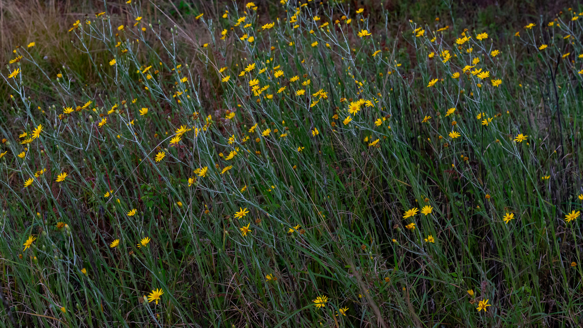 A patch of golden jewels swaying in the slight late morning breeze beckoned us closer. Narrowleaf Silkgrass (Pityopsis graminifolia), a member of the Aster family, often dies back during late winter months. We have had no days of below freezing temperature, so this group is happy to keep shining on ’til Spring. We are happy they decided to do so.