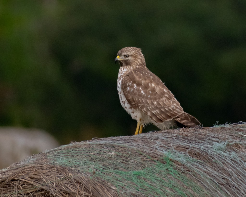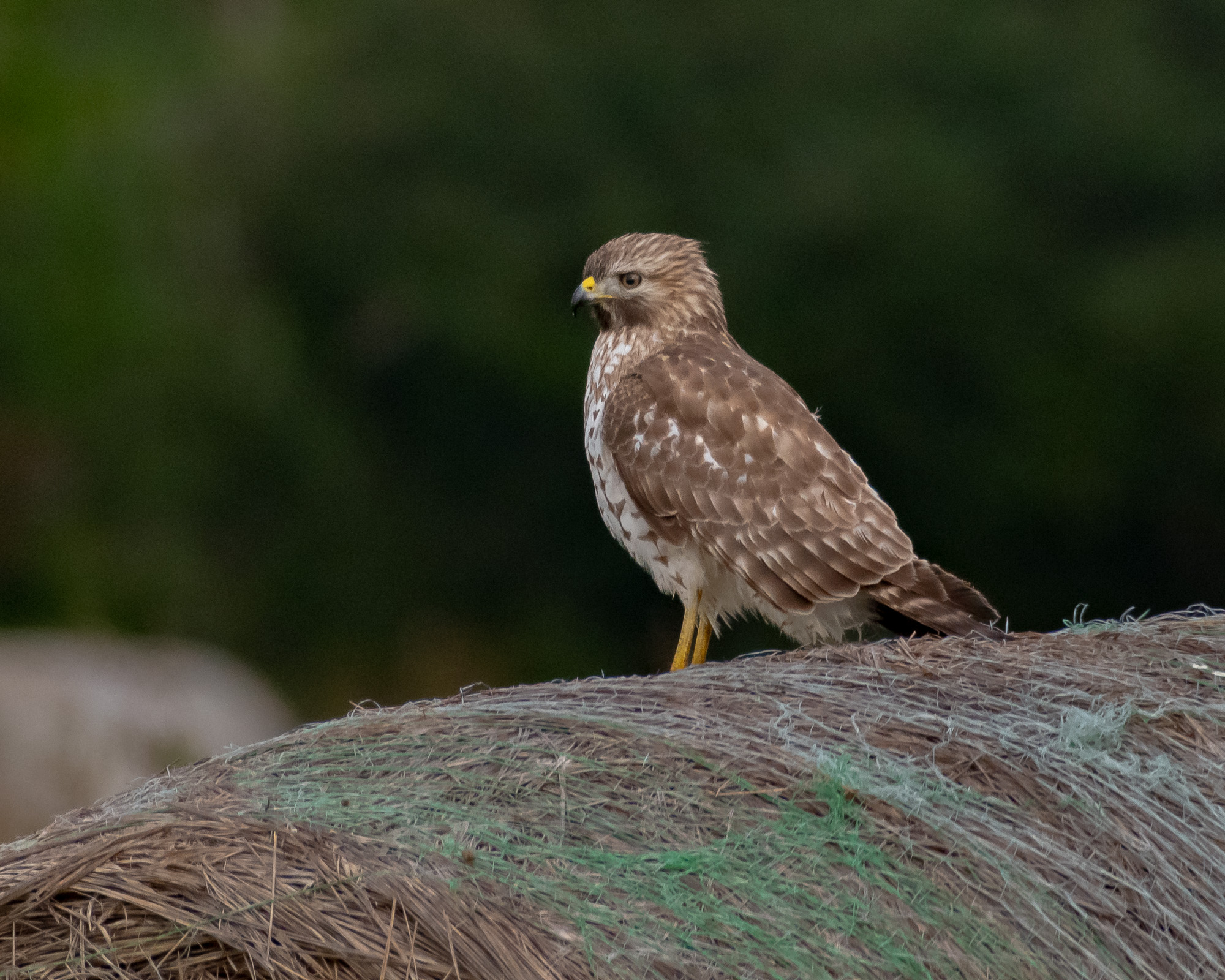 Perches for birds can be anything handy. A bale of hay, for example. An immature Red-shouldered Hawk appeared to spot some movement, but she eventually began to scan the area again as we left her in peace.